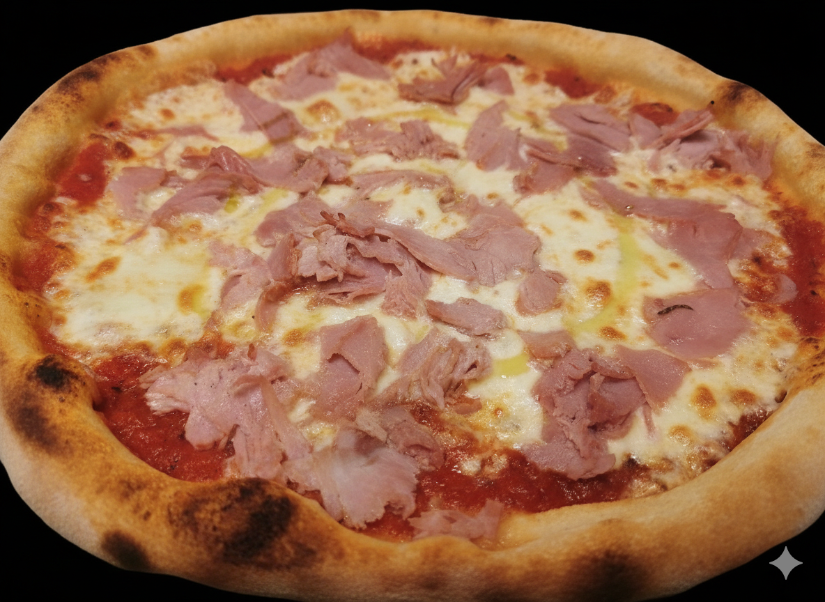 Sauce tomate, jambon, mozzarella.