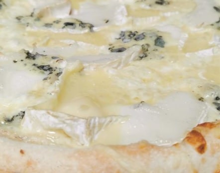 Base crème, chèvre, camembert rustique, bleu d’auvergne, emmental, mozzarella.
